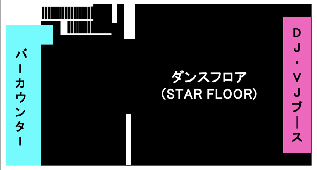 MOON FLOOR DJbooth / Bar / WC / 喫煙スペース / クローク / 男子更衣室